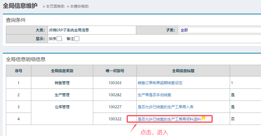 :点晴ERP-如何设置已结案的生产工单禁止再领料退料?
