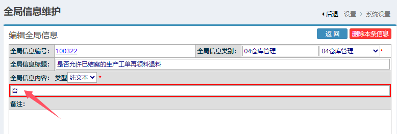 ​设置成“否”,则系统将不允许结案工单领料,退料。