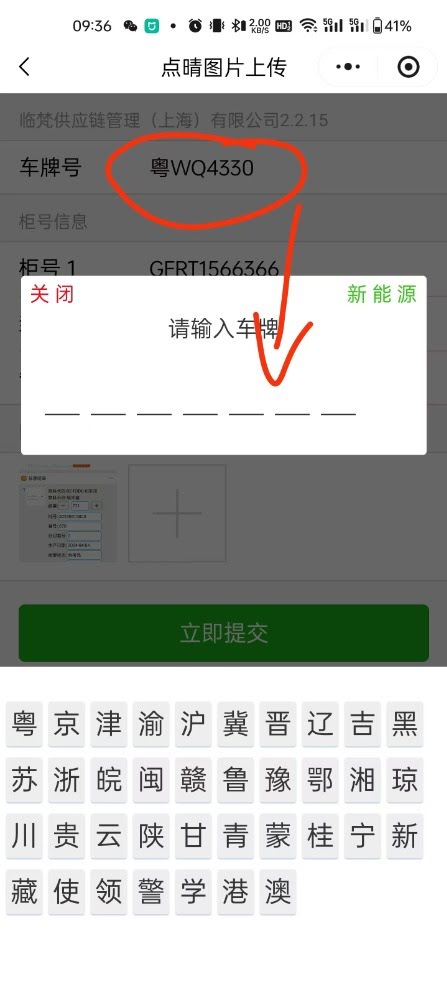 有多个车辆信息的话,上传图片时,可以点击车牌号码,修改车牌。