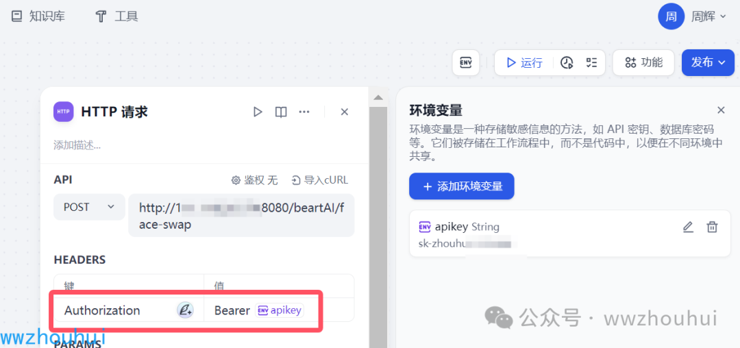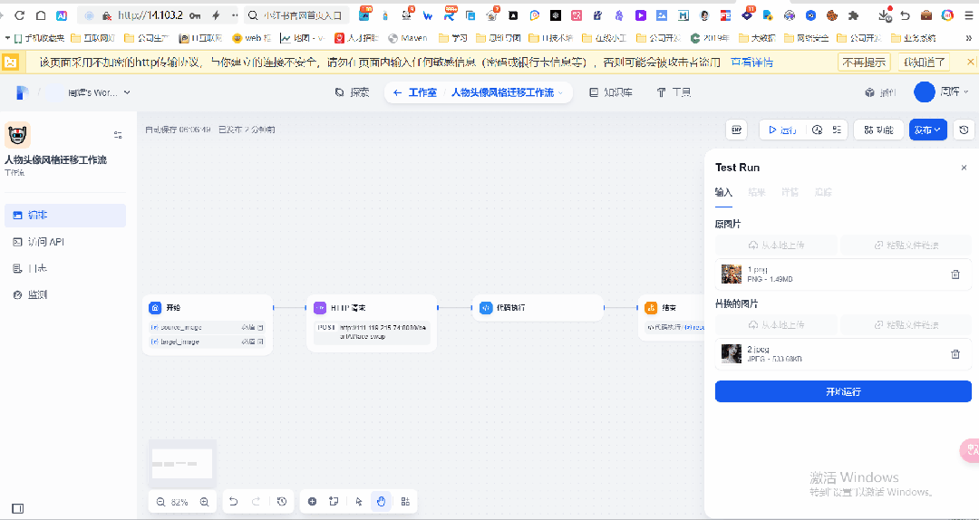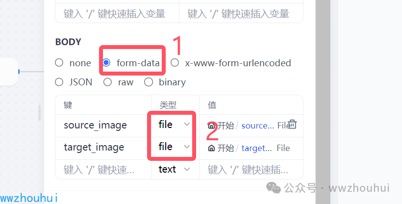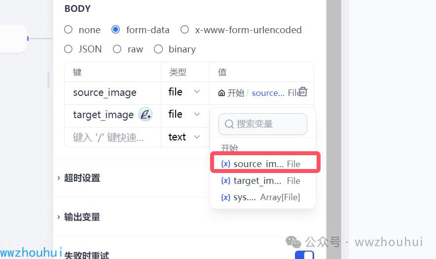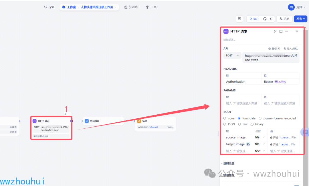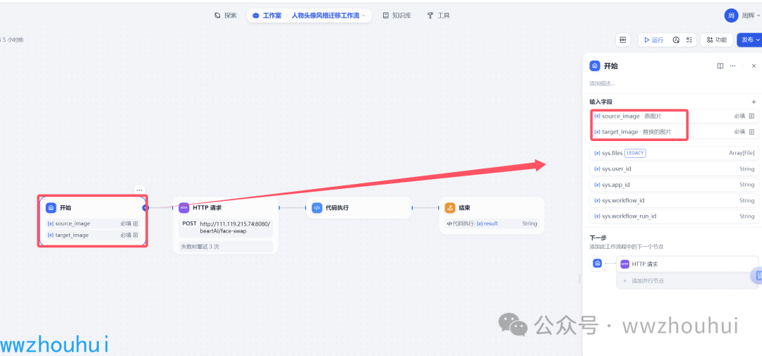 参数部分就是开始节点自定义的2个参数source_image、target_image