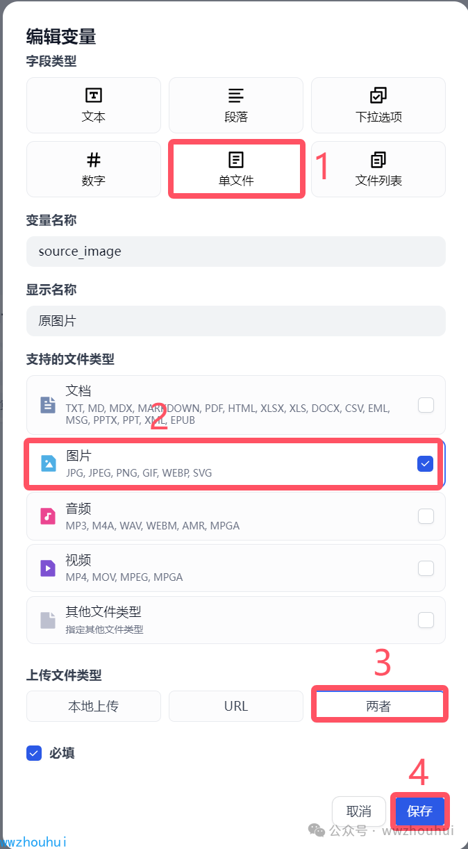 这里我们设置文件类型是图片,支持本地文件上传和URL两种方式都支持