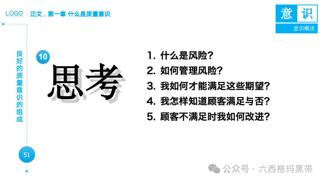 2. 影响认知:意识影响人们对事物的认知和判断。例如,一个质量意识强的员工会更敏锐地发现潜在的质量风险。
