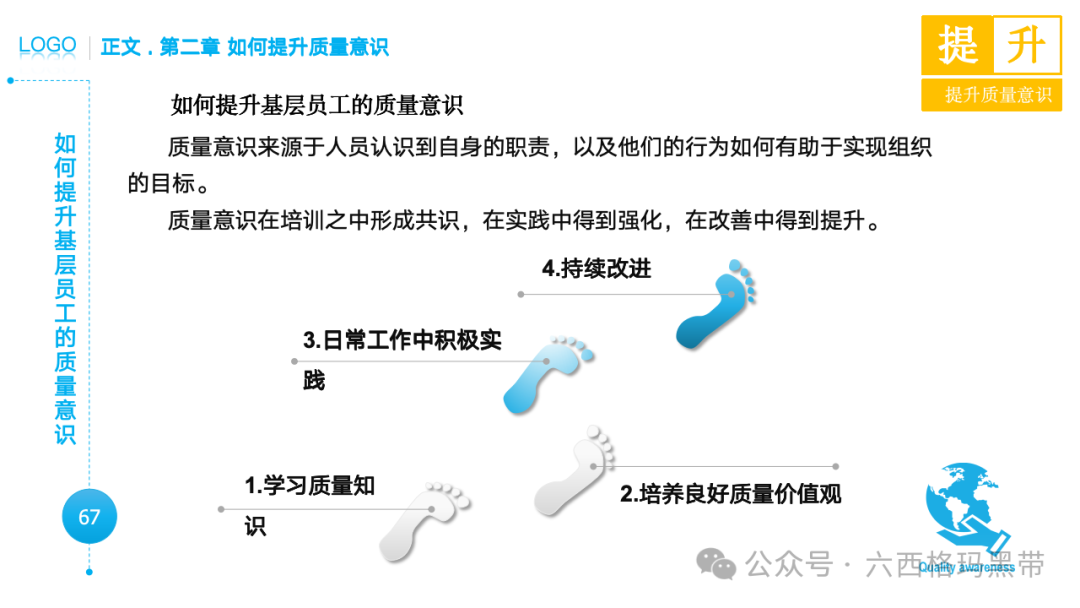 基层员工应不断强化和评估上述质量原则,确保质量意识不断提升。具体措施包括:
