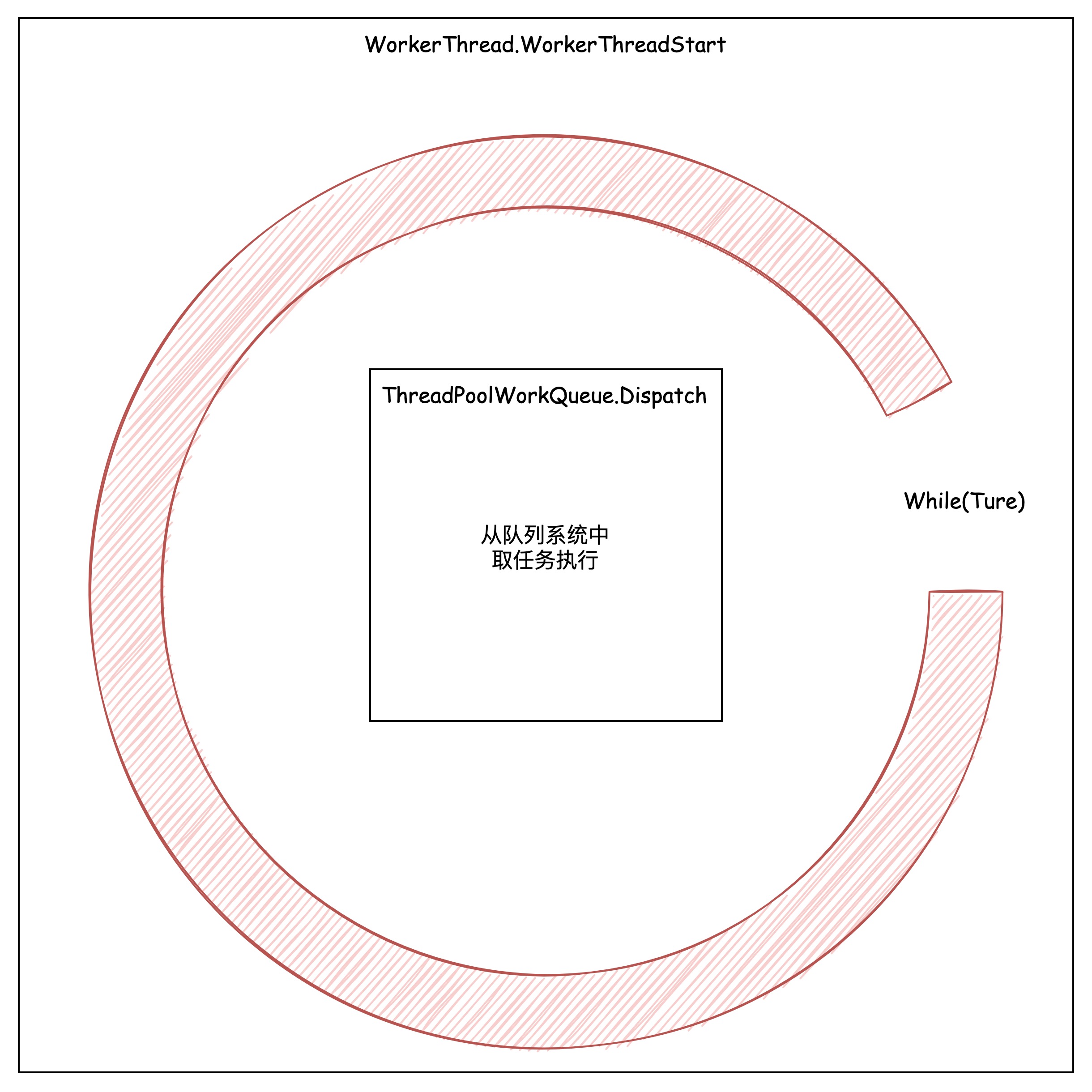 在 GateThread 是一个独立的线程,每隔 500ms 进行检查一下,如果 NumProcessingWork >= NumThreadsGoal(WorkerThread.MaybeAddWorkingWorker 不添加 Worker Thread 的判断条件),就设置新的 NumThreadsGoal = NumProcessingWork + 1,并调用 WorkerThread.MaybeAddWorkingWorker,这样新的 Worker Thread 就可以被 WorkerThread.MaybeAddWorkingWorker 创建。
