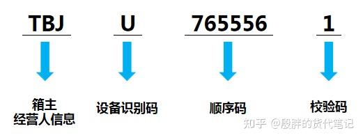 第一部分“箱主、经营人信息”,由3位英文字母组成,一般是箱主自己规定,并向国际集装箱局登记。我国箱主信息通常采用汉语拼音字母表示,如铁道部为TB、交通部为JT、外贸部为WM,所以上边的箱子一看“TBJ”就知道铁道部的集装箱。