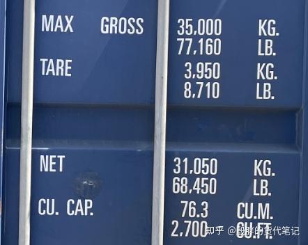 MAX.GROSS:集装箱最大总重,桥吊负荷及道路限重看这个数字。KG表示公斤,LB表示磅。