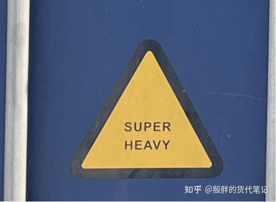 对于超重(总重超过30.48吨)的集装箱,可以看到有“SUPER HEAVY”的黄色三角形超重标记,一般在柜门或侧壁上都有显示。