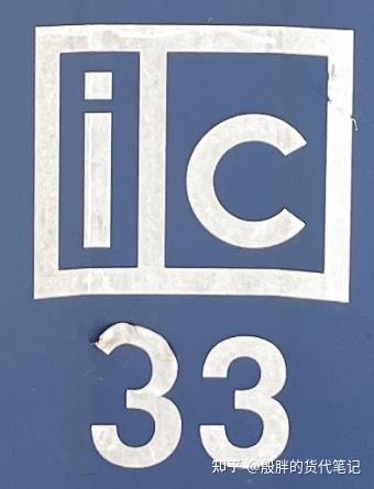 凡符合《国际铁路联盟条例》规定的技术条件的集装箱都可以获得上图标记。上面的“ic”表示国际铁路联盟(Union International des Chemins de Fer),是在欧洲铁路上运输集装箱的必要通行标记。下面的数字代表各个UIC成员国的代码,例如中国为33、日本为42、英国为70、德国为80等。