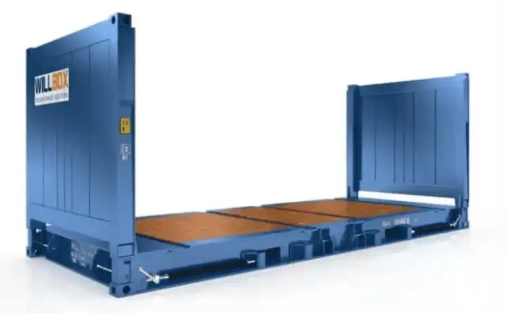 6)冷高箱:箱型代码RH;95码25R1 ![]() 7)油罐箱:箱型代码TK;95码22T1,又称液体集装箱,是为运输食品,药品、化工品、等液体货物而制造的特殊集装箱,其结构是在一个金属框架内固定上一个液罐。 ![]() 8)框架箱:箱型代码FR;95码22P1,没有箱顶和两侧,其特点是从集装箱侧面进行装卸。以超重货物为主要运载对象,还便于装载牲畜,以及诸如钢材之类可以免除外包装的裸妆货。