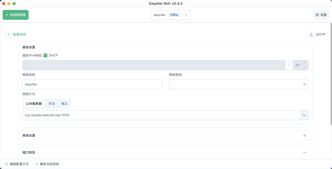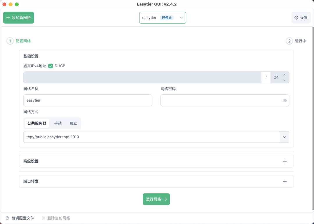 目前已部署的共享公共节点为tcp://public.easytier.cn:11010