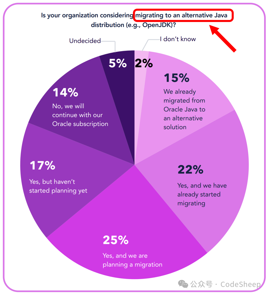 报告数据显示,在受访的这些企业中,有相当一部分比例的企业是因为价格因素而选择迁移到其他的开源版本 Java 提供商。