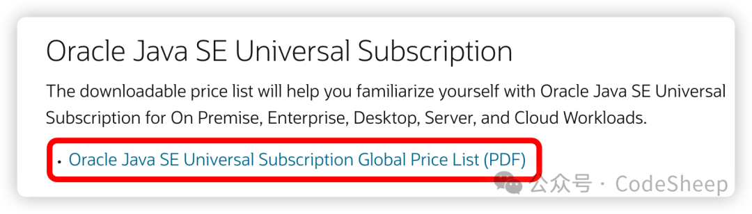 打开这个 PDF,在里面可以看到 Oracle 定的 Java SE 订阅价目表: