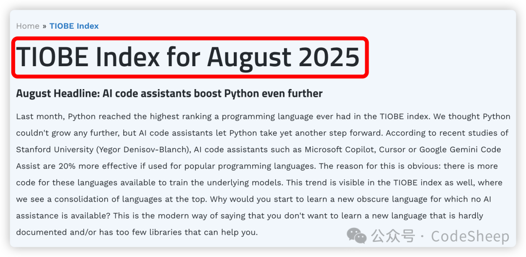 然而这才过去几年,如今的 Java 似乎也没有了当年那种无与争锋的强劲势头,由此可见 AI 领域的持续进化和繁荣对它的冲击到底有多大。