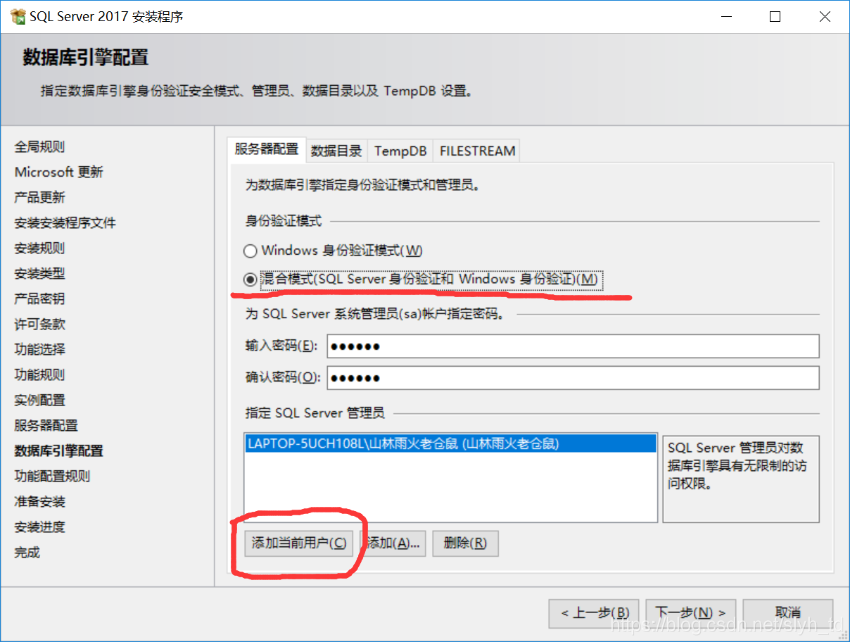 13.管理员名字为sa 注意要添加当前用户。