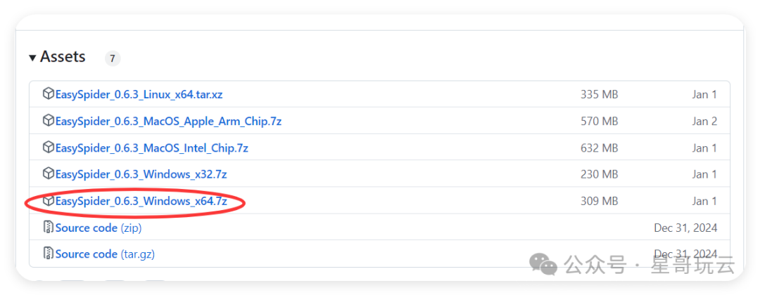 下载安装进入 Releases Page 下载最新版本。如果下载速度慢,可以考虑中国境内下载地址:中国境内下载地址。 我这里下载EasySpider_0.6.3_Windows_x64.7z 作为演示。