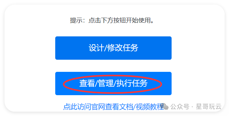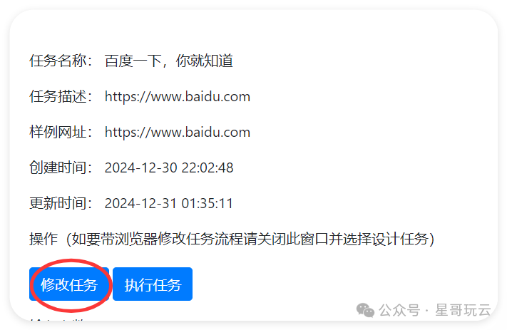 查看示例任务1.点击“查看/管理/执行任务”主要看看作者给到的实例,来理解
