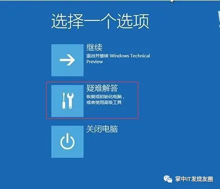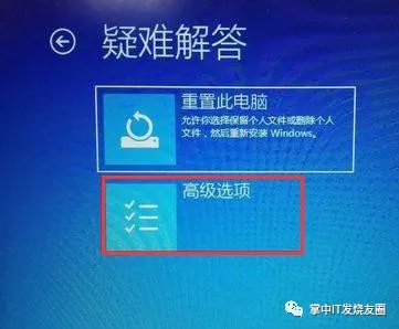 第二步、这个界面是重启后进入的,直接选择疑难解答-选择高级选项,在高级选项里选择系统还原