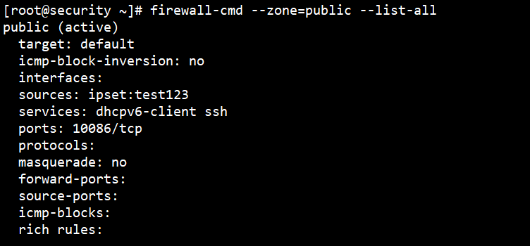 然后使用firewalld --get-ipsets就可以看到