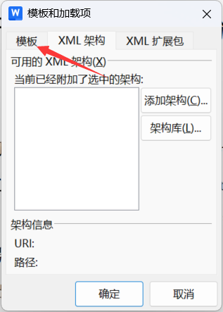 按照上述操作,出现如下方框   点击模板,会出现Mathtype相关插件,按照下图示操作